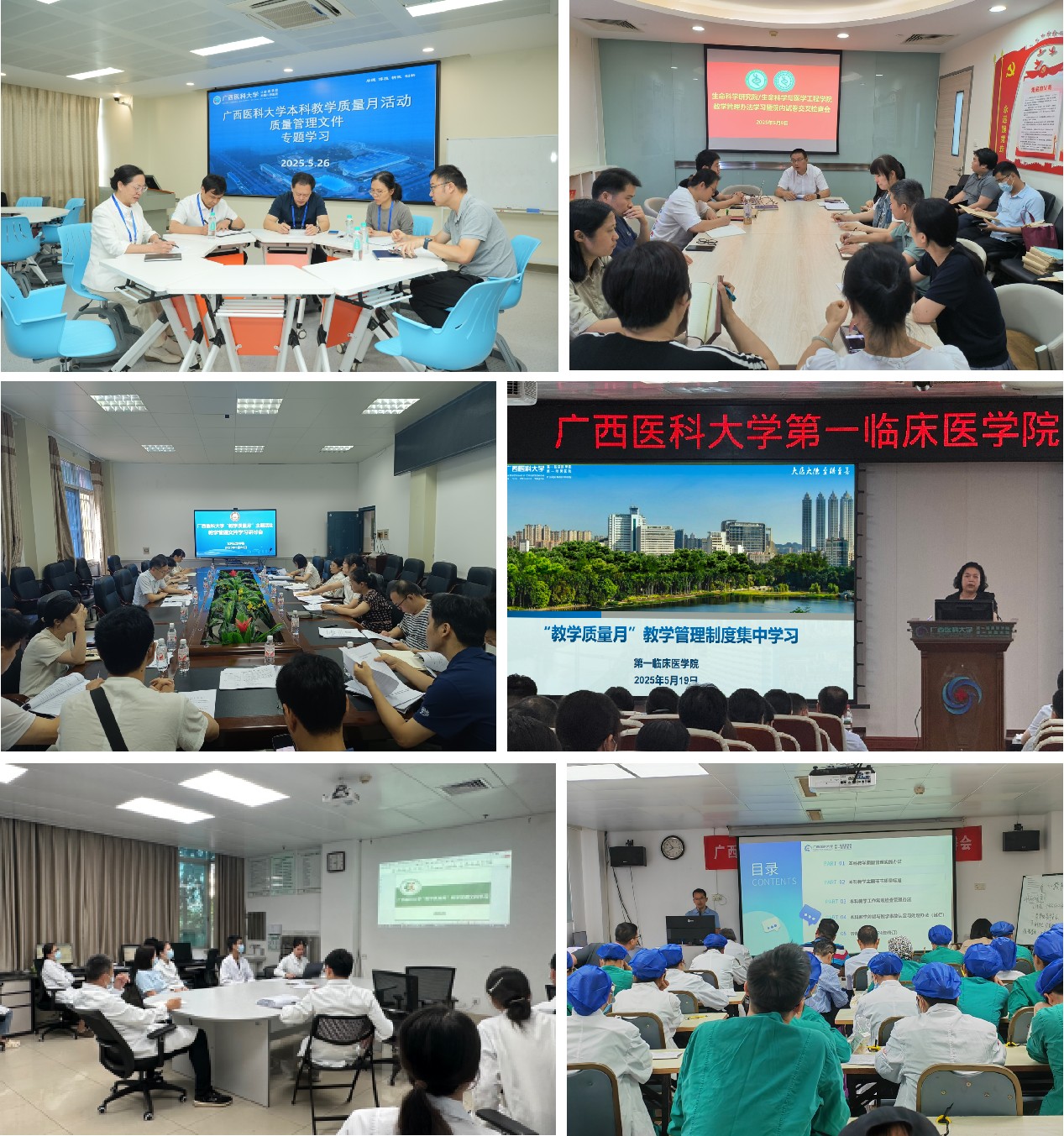 质量文化建设,思想先行。各学院以“教学质量月”为契机,组织全体教师系统学习《广西医科大学本科教学质量管理实施办法》《本科教学主要环节质量标准》等规章制度,通过“分层学习、专题研讨、案例剖析”模式,强化教师育人使命与责任担当。