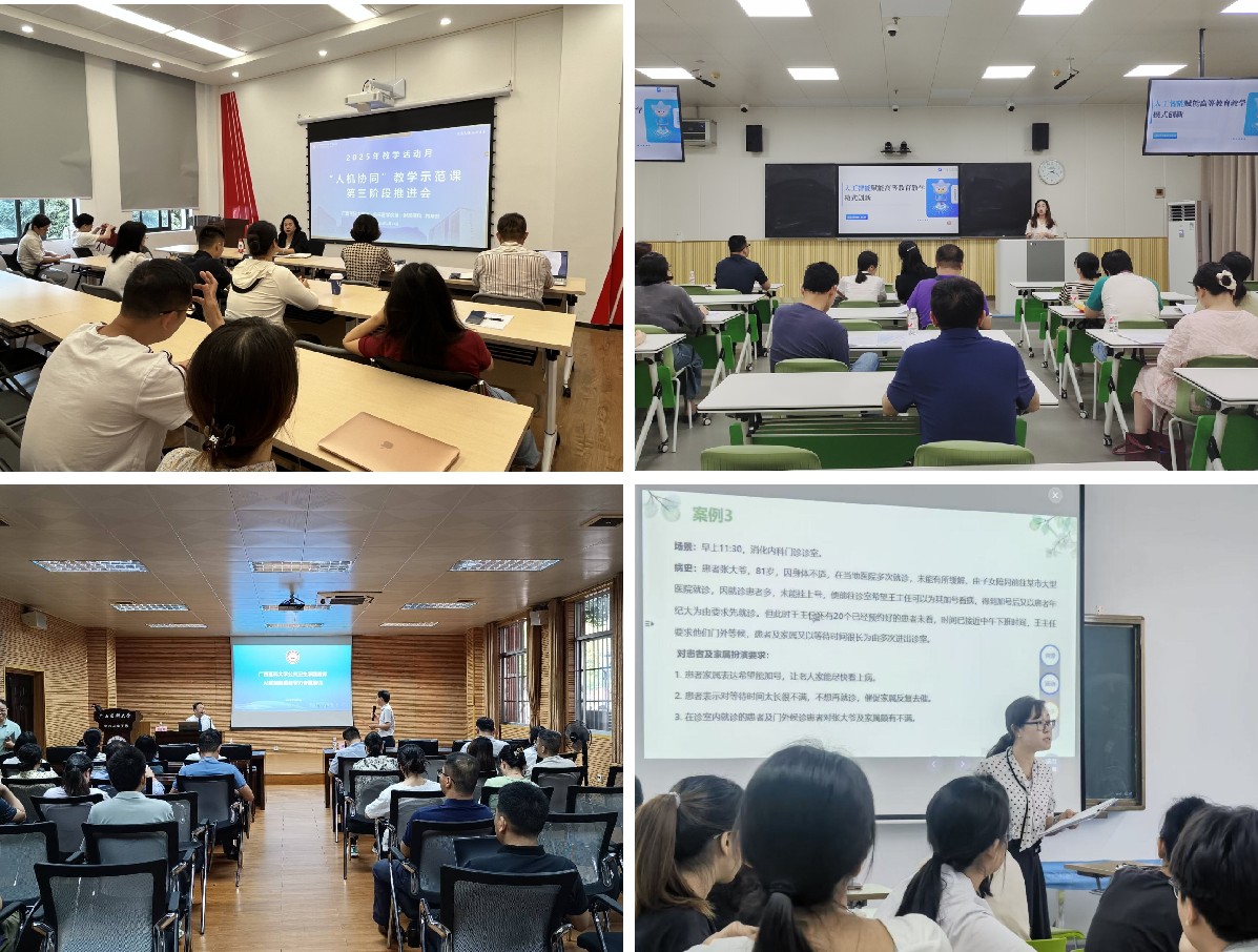 在人工智能赋能教育背景下,示范课特别推出“人机协同课堂”,展示知识图谱、DeepSeek等AI工具与医学教育的深度融合场景。学校教育评价与教师发展中心同步开展“智领未来:人工智能深化赋能教育高质量发展”专题培训,各学院积极响应:第一临床医学院组建 AI赋能教学专项小组,基础医学院重点推进主干课程的任务引擎研发和智能体建设,公共卫生学院举办“AI赋能教师新质教学力提升”系列培训,全科医学院开展“AI创新教学研讨会”。